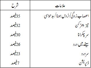 ساتھ میں اضطراب اور دباؤ بھی محسوس ہوتا ہے۔ سینے میں سختی محسوس ہوتی ہے اوردباؤ اور درد بعض اوقات گردن، بائیں کندھے، بائیں بازو اوربائیں ہاتھ تک پھیل جاتا ہے۔