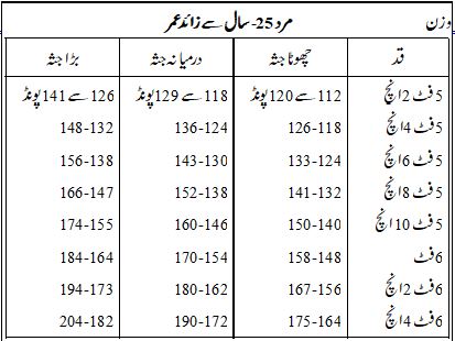 l مردوں کے لئے موزوں ترین وزن ۔۔۔ نارمل وزن منفی 10فیصد ہوتا ہے۔