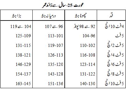 l عورتوں کے لئے موزوں ترین وزن ۔۔۔ نارمل وزن منفی 15فیصد۔